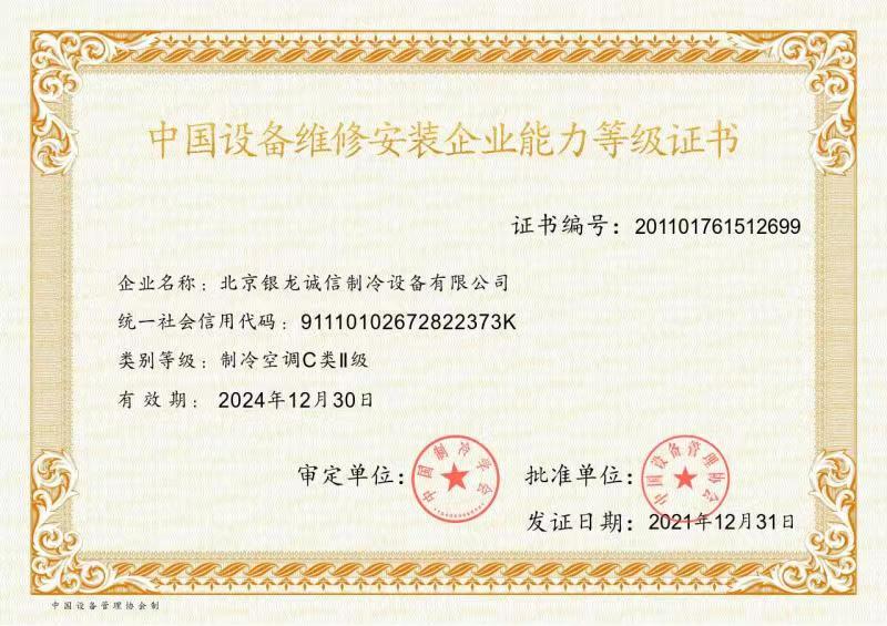 2007年:獲準(zhǔn)成為北京市制冷行業(yè)技術(shù)學(xué)會(huì)理事單位; 2009年:獲得北京市大興區(qū)百強(qiáng)企業(yè)認(rèn)證; 2009年:獲得國家高新技術(shù)企業(yè)認(rèn)證; 2011年:獲北京市安全生產(chǎn)先進(jìn)企業(yè)稱號,節(jié)能環(huán)保先進(jìn)單位; 2012年:通過了國家高新技術(shù)企業(yè)復(fù)審; 2013年:公司董事長獲"2013北京先進(jìn)企業(yè)家"榮譽(yù)稱號; 2014年:獲2014年度中國冷庫工程安裝設(shè)計(jì)造價(jià)行業(yè)十大品牌;
